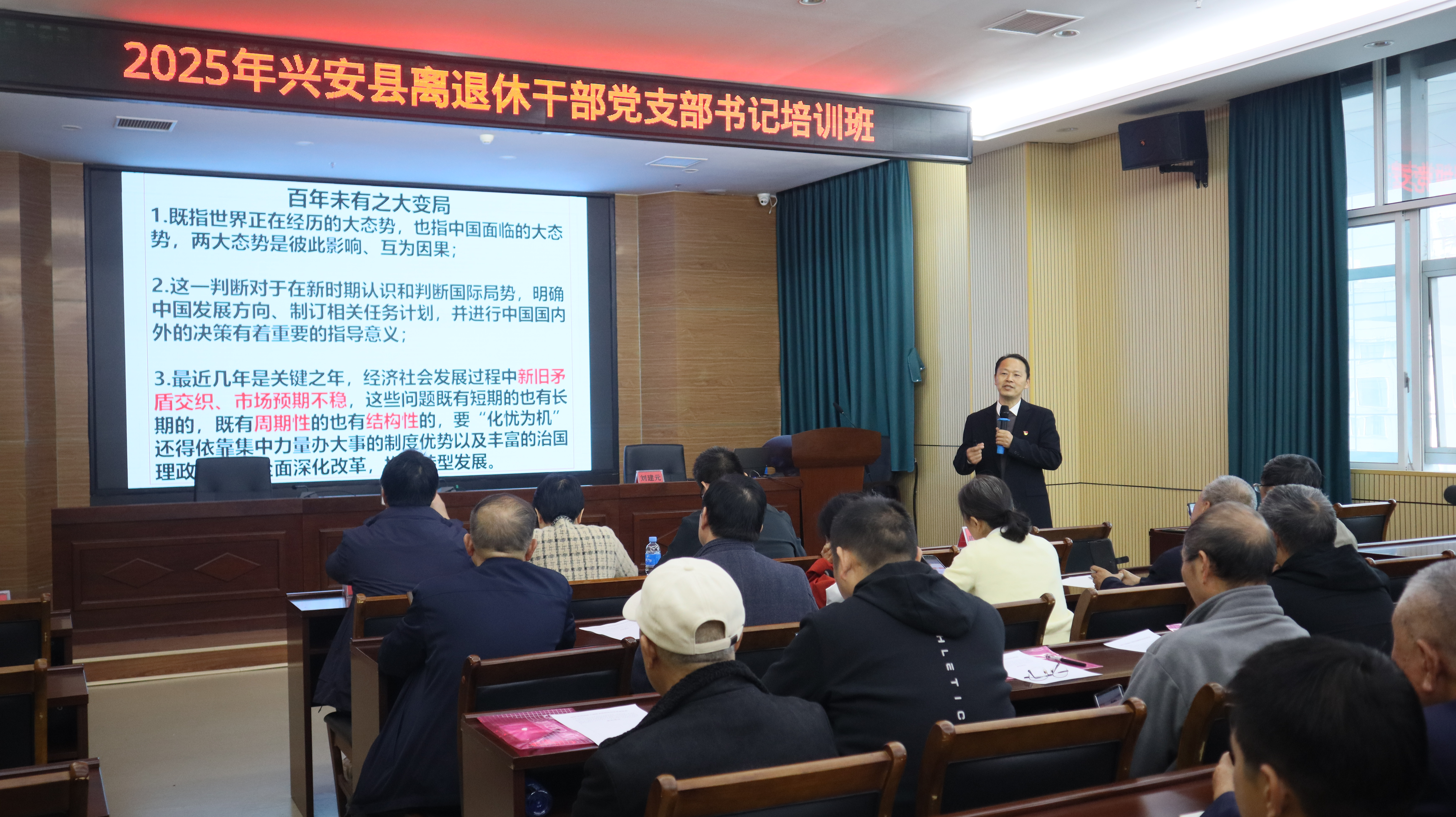 为进一步提升离退休干部党支部书记能力素质,推动离退休干部党建工作高质量发展,12月2日,兴安县举办2025年离退休干部党支部书记培训班,全县35名党支部书记及党务工作者齐聚参训、共学共进。