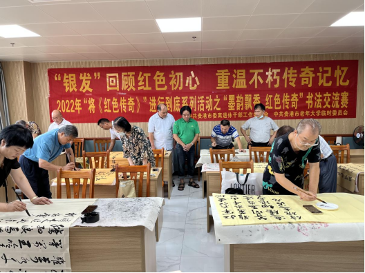 用好书法课堂,临摹别样“红色云章”。为推进党史学习教育常态化长效化,持续深入在离退休干部队伍中开展好2022年“将《红色传奇》”进行到底系列活动,市委离退休干部工委依托市老年大学举办“将《红色传奇》”进行到底系列活动之“墨韵飘香 红色传奇”书法交流赛。市老年大学各临时党支部共30余名退休老同志积极参与交流赛,现场泼墨,书写红色主题革命诗词和习近平总书记的经典语录,用笔墨丹青传承红色基因,展现新时代老干部的革命情怀和精神风貌。本次活动共收到书画作品200余幅,并从中精心挑选了8幅参加贵港市2022年“将《红色传奇》进行到底”征文书画诵读评比活动。