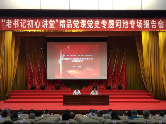 6月17日上午,自治区“老书记初心讲堂”精品党课党史专题河池专场报告会在河池市行政办公中心一楼会议厅举行。自治区党委原副书记、自治区人大常委会原副主任潘琦应邀作题为《建党百年党民族政策理论与实践的光辉成就》专题报告。市委常委、宣传部部长、副市长陆海生参加并主持报告会。