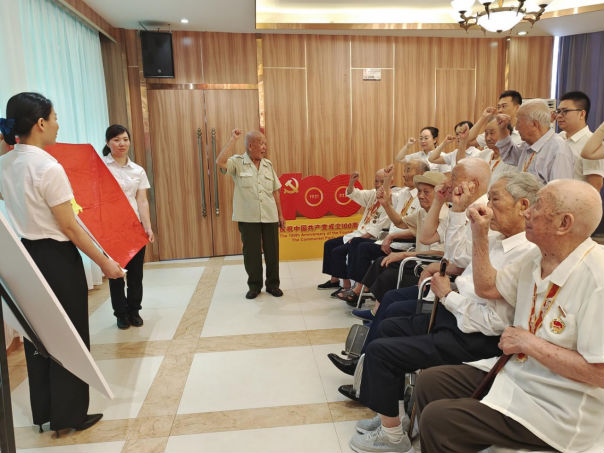 6月18日上午,柳州市鱼峰区企业离休干部服务管理中心组织企业离休干部及鱼峰区两新党组织年轻党员代表召开七一座谈会,喜迎中国共产党成立100周年。