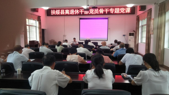 6月22日,崇左市扶绥县委老干部局举办“七一”主题党课。县直单位离退休党支部书记、委员、离退休党员代表等50余人参加学习。