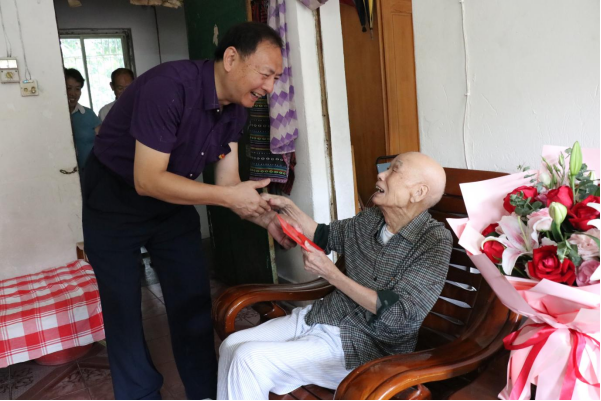 为了庆祝中国共产党成立100周年,扎实推进党史学习教育,在“七一”建党来临之际,柳州市委老干部局开展慰问百岁离休老党员活动。