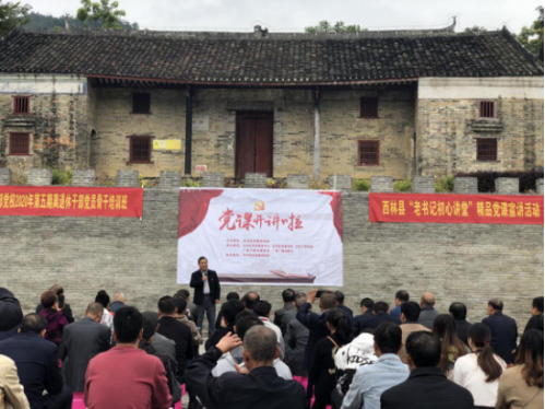 离退休党员干部首先来到西林县那劳镇参观了岑氏家族古建筑群,详细了解“岑氏一门三总督”的故事。参观后,原县人大常委会主任王正福在宫保府为离退休党员干部和那劳镇党员干部上了一堂生动的党课。老书记用朴实而又生动的语言、真挚的情感讲述了中国改革发展的艰辛奋斗历程,还围绕政治、经济、文化建设三个方面,通过对比讲述了西林县改革开放以来的发展变化。