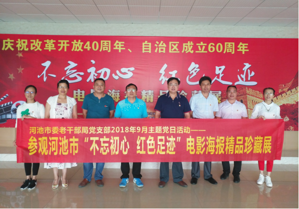 9月29日下午,河池市委老干部局党支部组织党员到河池市革命纪念馆开展主题党日活动,参观“不忘初心·红色足迹”电影海报精品珍藏展,追寻红色经典回忆,感受历史的沉淀与厚重。