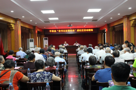 日前,平果县委老干部局到马头镇江滨社区开展“老书记百堂党课”进社区活动,近一百名离退休干部党员到场参加活动。