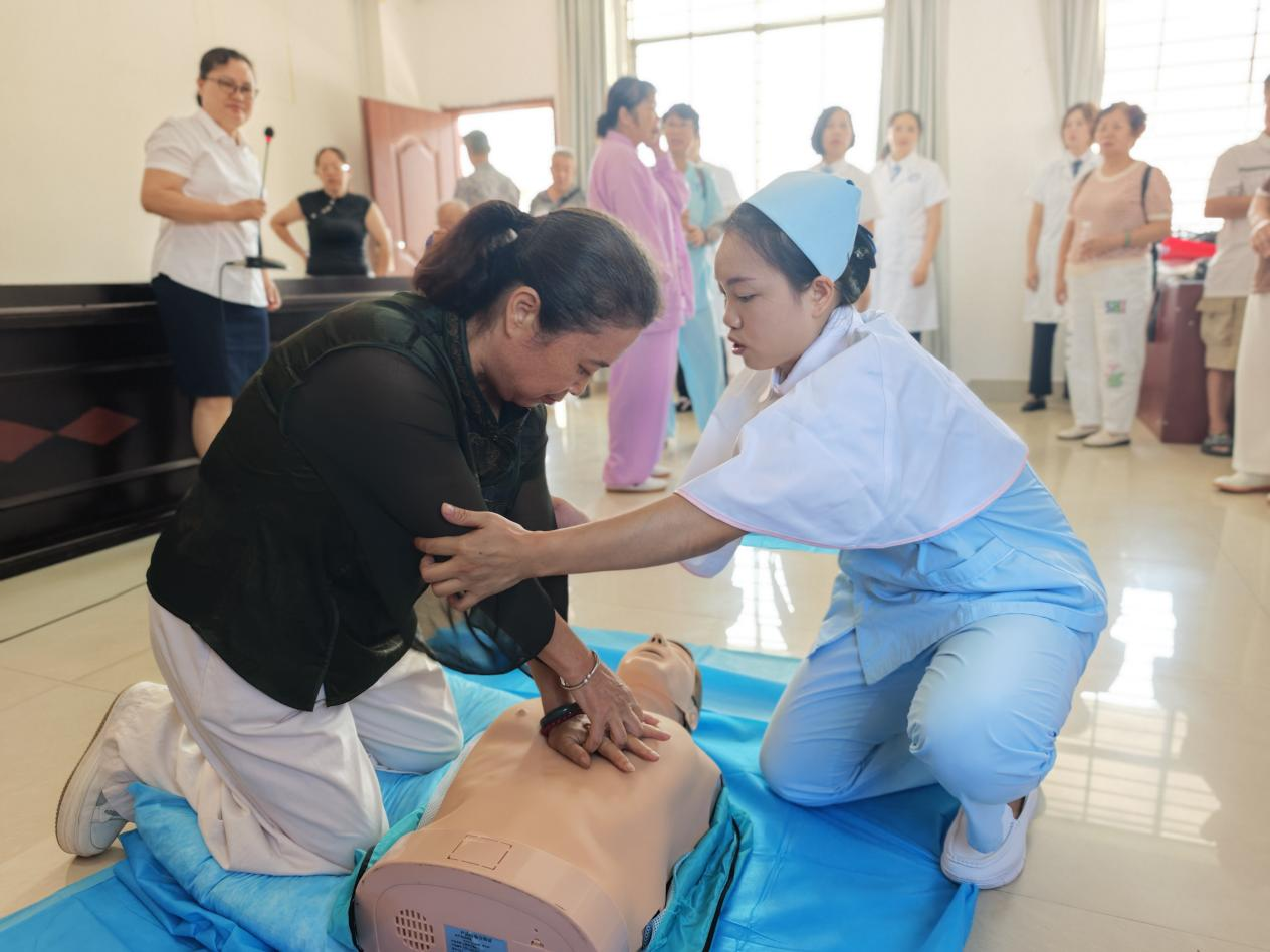 授课环节,县医院口腔科主任、副主任医师潘丹丽以“老年人口腔卫生与保健”为主题,深入浅出地讲解了口腔健康对整体生活质量的重要性,结合临床案例,介绍了常见口腔问题的预防与处理方法,提醒大家注意日常清洁、定期检查,守护“舌尖上的幸福”。县医院心内科副主任、副主任医师唐小华围绕“心脏病康复”,用通俗易懂的语言阐释了心血管疾病的早期征兆和康复要点,引导老年朋友科学护心、健脑。急救知识现场演示环节,医护人员借助教学模具,分别演示了心肺复苏术和海姆立克急救法的规范操作,同时邀请观众互动,手把手指导动作技巧。大家凝神观看、积极参与,现场气氛热烈。整场讲座内容贴近生活、语言通俗生动,深受在场中老年朋友欢迎。“专家讲得清楚,我们听得明白,尤其是急救操作,关键时刻能救人,太实用了!”来自县老科协的阳祖伟高兴地说。