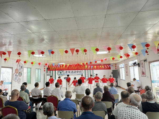 活动在文艺表演中拉开帷幕,舞蹈《山歌好比春江水》、茶艺表演《玻璃杯冲泡绿茶》、独唱《走向新时代》、三句半《敬老院就是好》、太极《八段锦》等11个节目依次上演,台上表演者激情满怀、载歌载舞,台下老人们精神矍铄,整个演出节奏明快,充满欢乐。表演结束后,志愿者们将提前亲手制作的600多份粽子送给养老中心的每一位老人,让老人们感受到节日的温馨与祝福。