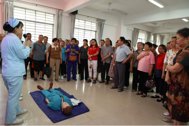 活动中,县人民医院副院长彭云波作了中老年人心脑血管、慢性病知识专题讲座,讲座案例丰富、图文并茂,讲解生动,老同志纷纷表示受益匪浅。医护人员为大家作心肺复苏、海姆利克急救法技能培训,通过现场演示、手把手教学,老同志对心肺复苏、海姆利克急救法有了更深的认识,掌握了相关急救技能。在义诊现场,县人民医院内科、神经内科、消化内科、康复医学科、中医科、妇产科、急诊科10余名医护人员利用丰富的专业知识、精湛的医疗技术,为前来问诊的老同志细心号脉,检测血压、血糖,仔细地询问老人的病情症状,同时针对高血压、糖尿病、风湿关节炎等老年常见病的日常理疗进行详细讲解。
