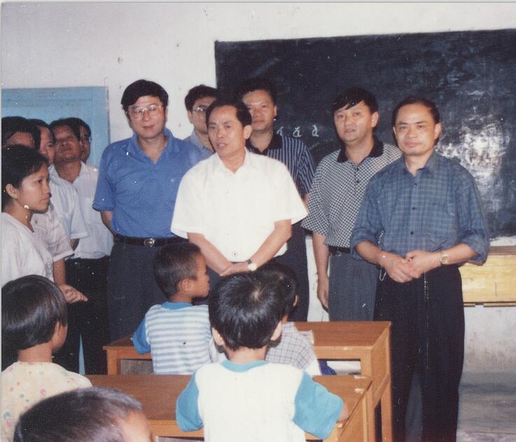 那是1998年枫红满山,果黄稻熟的金秋,9月14日上午,我和河池地区广东帮扶异地安置场大化分场的领导站在大吉安置点的山坡上,焦急地望着山坡下的公路。啊!来了来了!大约十时左右,几辆小汽车驶离柏油公路,艰难地爬上新开的泥土路,一溜儿停在刚建好的学校操场上。