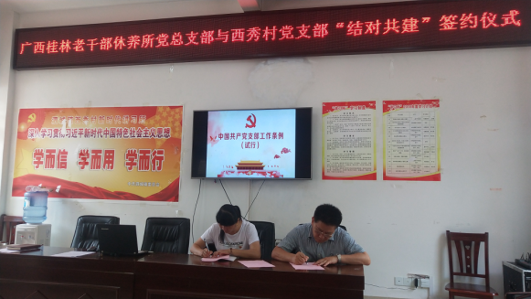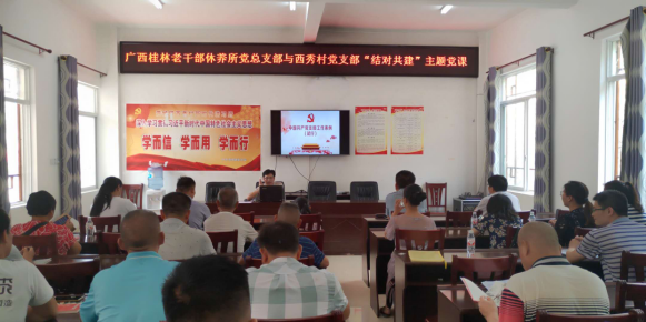 当天,共建双方还召开党员大会,围绕“如何发挥党支部堡垒作用和党员先锋模范作用,助力脱贫攻坚”主题,一起上了一堂“支部工作条例解读”党课。桂林老干部休养所党总支还在活动中向西秀村党支部党员图书室和全体党员分别赠送了一批图书和学习资料。