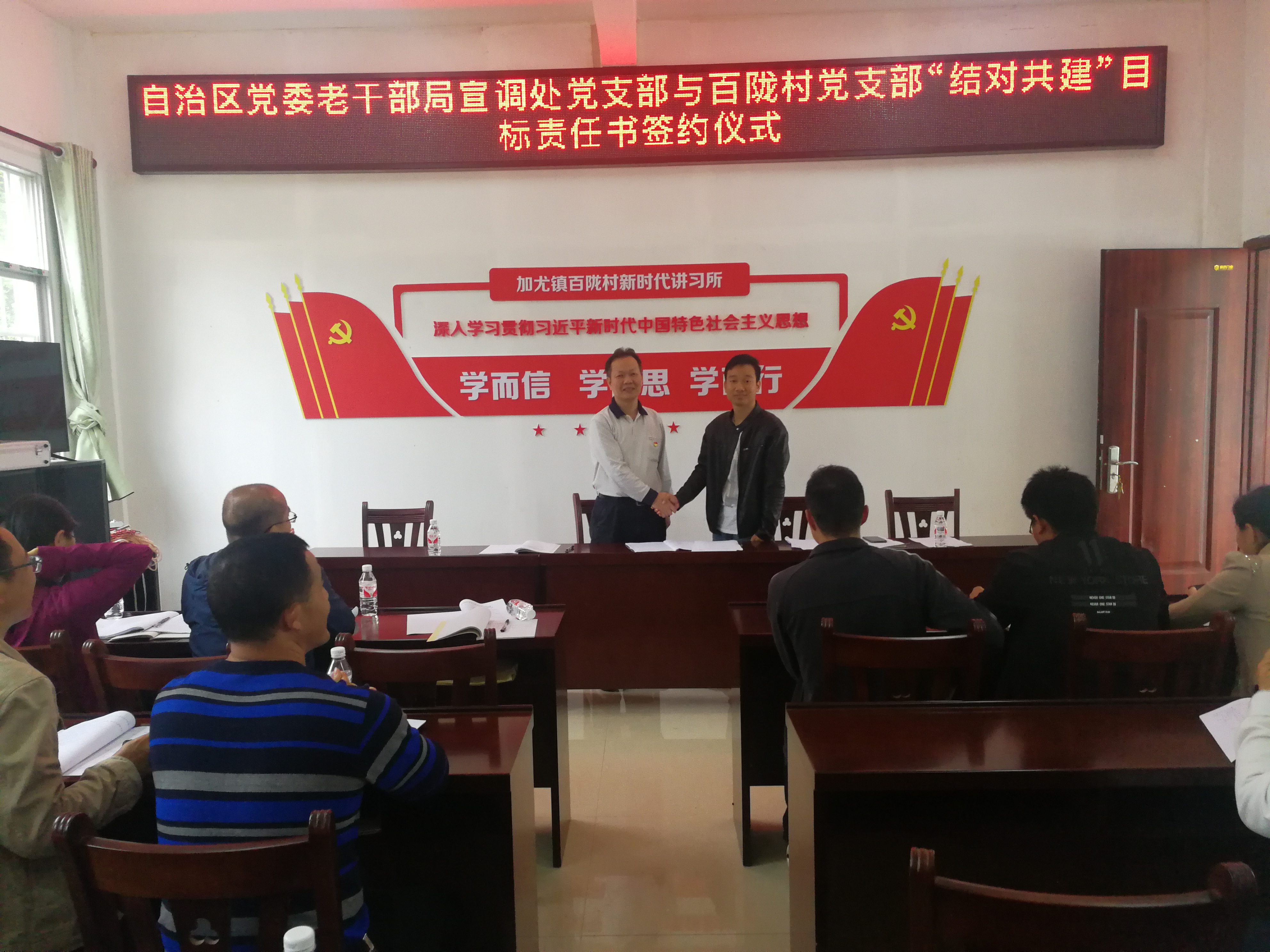 为加强自治区党委老干部局脱贫攻坚帮扶联系村党组织建设,把帮扶联系村党组织的组织资源转化为发展资源、组织优势转化为发展优势、组织活力转化为发展活力,为打赢脱贫攻坚战提供坚强的组织保障。5月8日—10日,自治区党委老干部局宣传调研处党支部一行6人在支部书记林燕军的带领下,到凌云县百陇村开展结对共建活动。