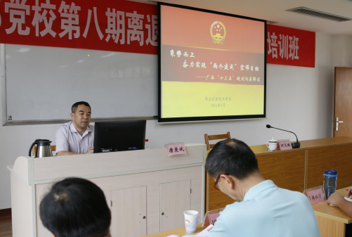 图为自治区党委老干部局副局长李世科在广西老干部党校第八期离退休干部党员骨干培训班开班仪式上讲话。