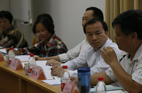 图为广西老年大学、广西老干部党校副校长何天维(右二) 参加培训班讨论组座谈交流