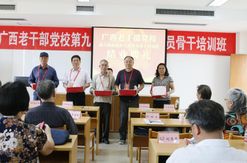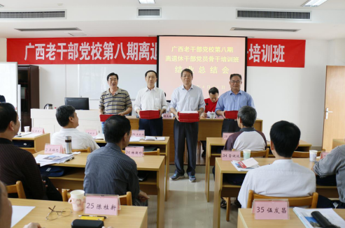 4月19日至21日、 26日至28日,广西老干部党校第八、九期离退休干部党员骨干培训班分别完成了为期3天的两期培训,来自75个区(中)直单位近180名离退休干部党员骨干参加了培训。自治区党委老干部局副局长李世科出席第八期开班仪式并讲话。