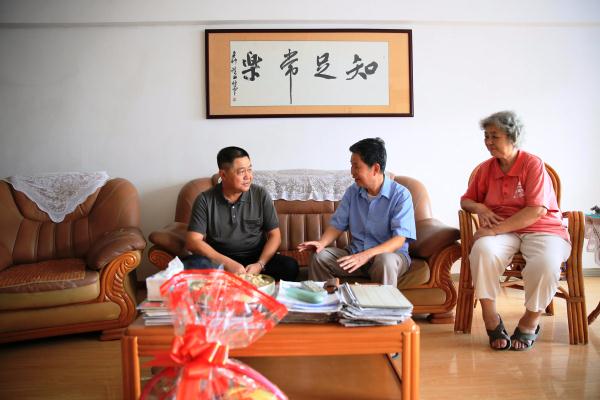 图为何小聪厅长与赖老及其家属亲切交谈