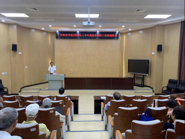 为使广大离退休教职工及时了解学校的改革发展建设情况,7月12日上午,广西财经学院在明秀校区召开2023年上半年离退休教职工校情通报会。夏飞校长出席会议并通报学校办学有关情况,学校党委(校长)办公室主任、统战部常务副部长陈思源主持通报会。学校近70名离退休教职工参加了会议。