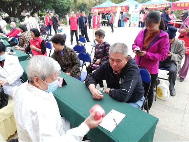 广西老科协党支部、广西中医药大学离退处党支部和广西农科院离退处党支部的党员也全程为义诊活动提供场地布置、物资供应、维持秩序、健康咨询、问题解答、免费量血压测血糖等志愿服务,确保义诊活动正常开展并取得圆满成功。