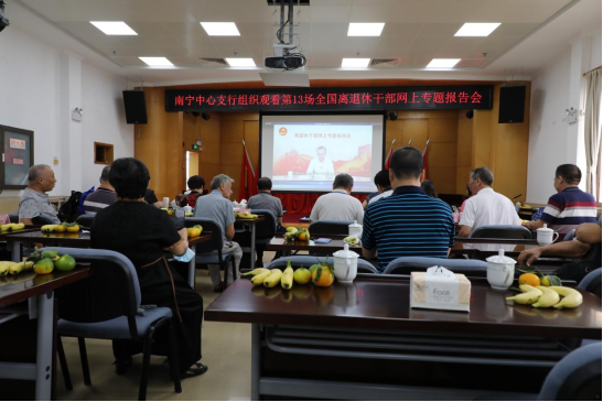 9月27日下午,人民银行南宁中心支行党委书记、行长陈晋祥与离退休干部工作领导小组成员、各党支部委员、党员和群众代表共50人,集中观看第13场全国离退休干部网上专题报告会,深入学习习近平总书记关于网络强国的重要思想,进一步提高离退休干部网络安全意识。