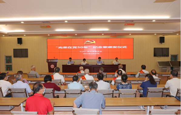 图为“光荣在党50年”纪念章颁发仪式现场