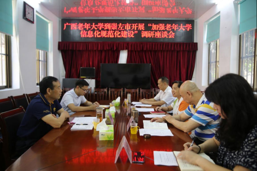 9月29日,广西老年大学办公室主任邹刚清一行2人到崇左市开展以“加强老年大学信息化规范化建设”为课题的调研活动。崇左市委组织部副部长、老干部局局长韦桂德,市政协原副主席、市老年大学校长谭先进,市委老干部局副局长蒋三成,龙州县委组织部副部长、老干部局局长黄勇参加调研。