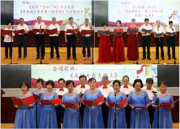 在雄壮的国歌声中,文艺表演拉开帷幕。表演以诗、词朗诵、红色歌曲演唱、乐器独奏等方式呈现,表演精彩纷呈,表达了老同志们对党无比热爱的真挚情感,抒发了对祖国的无限祝福,更表现了“感党恩保本色 永远跟党走”的坚定信心。期间大家还观看了《中国共产党百年述职报告》《水利厅老干部“我看建党百年新成就”专题调研活动纪实》等视频。现场观众热情高涨,掌声热烈。最后,文艺表演在全体人员合唱《没有共产党就没有新中国》的激昂旋律中圆满结束。