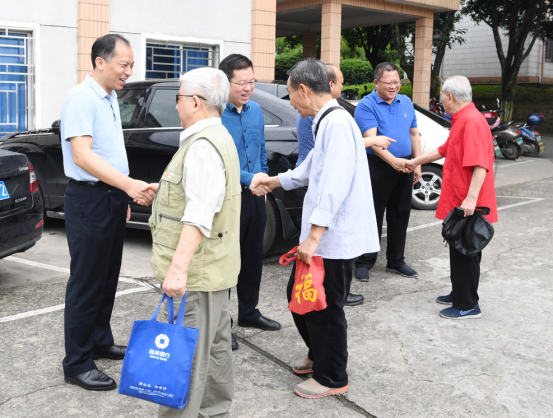 邓军书记、贺祖斌校长、旷永青副书记到体检现场,迎接和看望参加体检的老同志。校领导关切地了解老同志的生活情况和身体状况,叮嘱老同志时刻关注自身健康,保证充足睡眠,保持阳光心态,坚持适当锻炼,安享高质量的晚年生活。