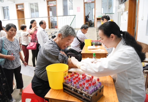 老同志们参加体检。
