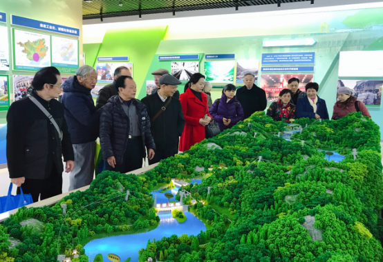 老同志们参观红水河梯级电站沙盘。