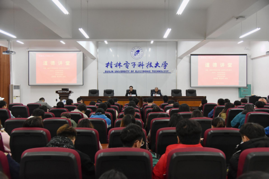 12月20日下午,桂林电子科技大学道德讲堂在花江校区红亮学生活动中心一楼宣讲室开讲。桂林电子科技大学退休教师、首届全国文明家庭、全国最美家庭、全国五好家庭熊发明作应邀作“继承中华传统美德 弘扬尊老爱幼新风”主题报告。来自各学院的100余名学生代表聆听了讲座。