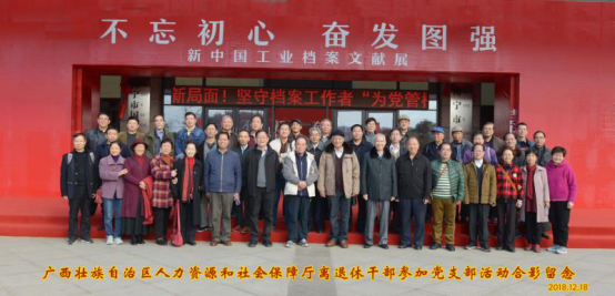 12月18日,自治区人社厅离退休党总支部开展党日活动,组织50多名离退休党员干部到南宁市国家档案馆和自治区档案馆参观改革开放40周年系列展览。