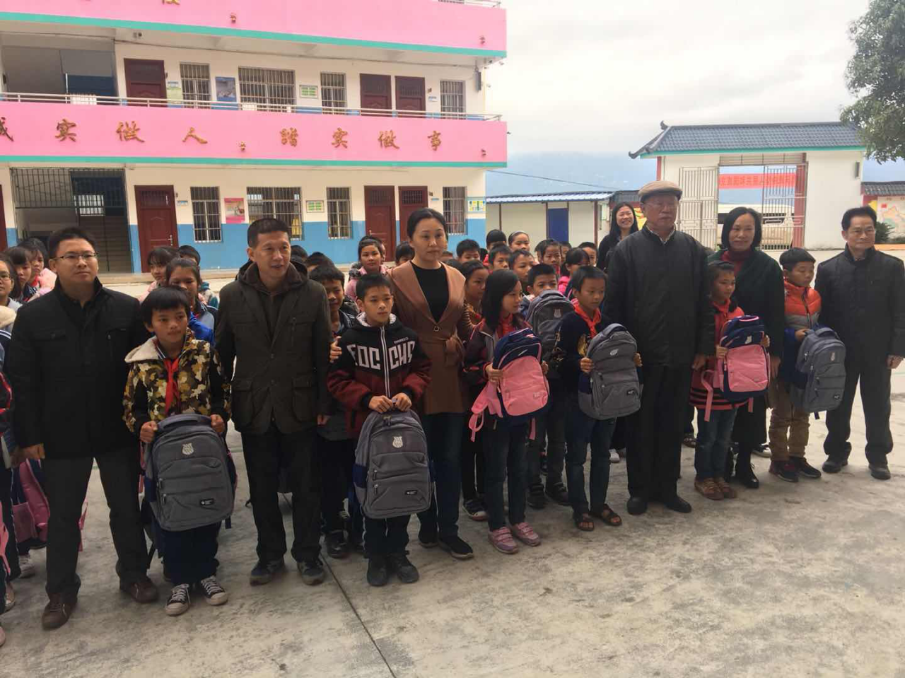 在上林县云里村云里小学,老同志们看望学校师生,叮嘱学生们要好好学习,努力增长本领,将来为家乡贡献力量。当天,为学生捐赠书包55个、图书143册、文具一批等,共价值1万元人民币。捐赠仪式结束后,原自治区总工会副主席刘益阳教授以“走向成功的阶梯”为题给师生们授课。
