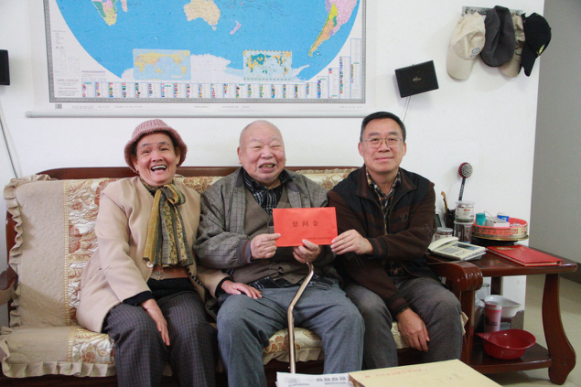 慰问离休干部黄明发。