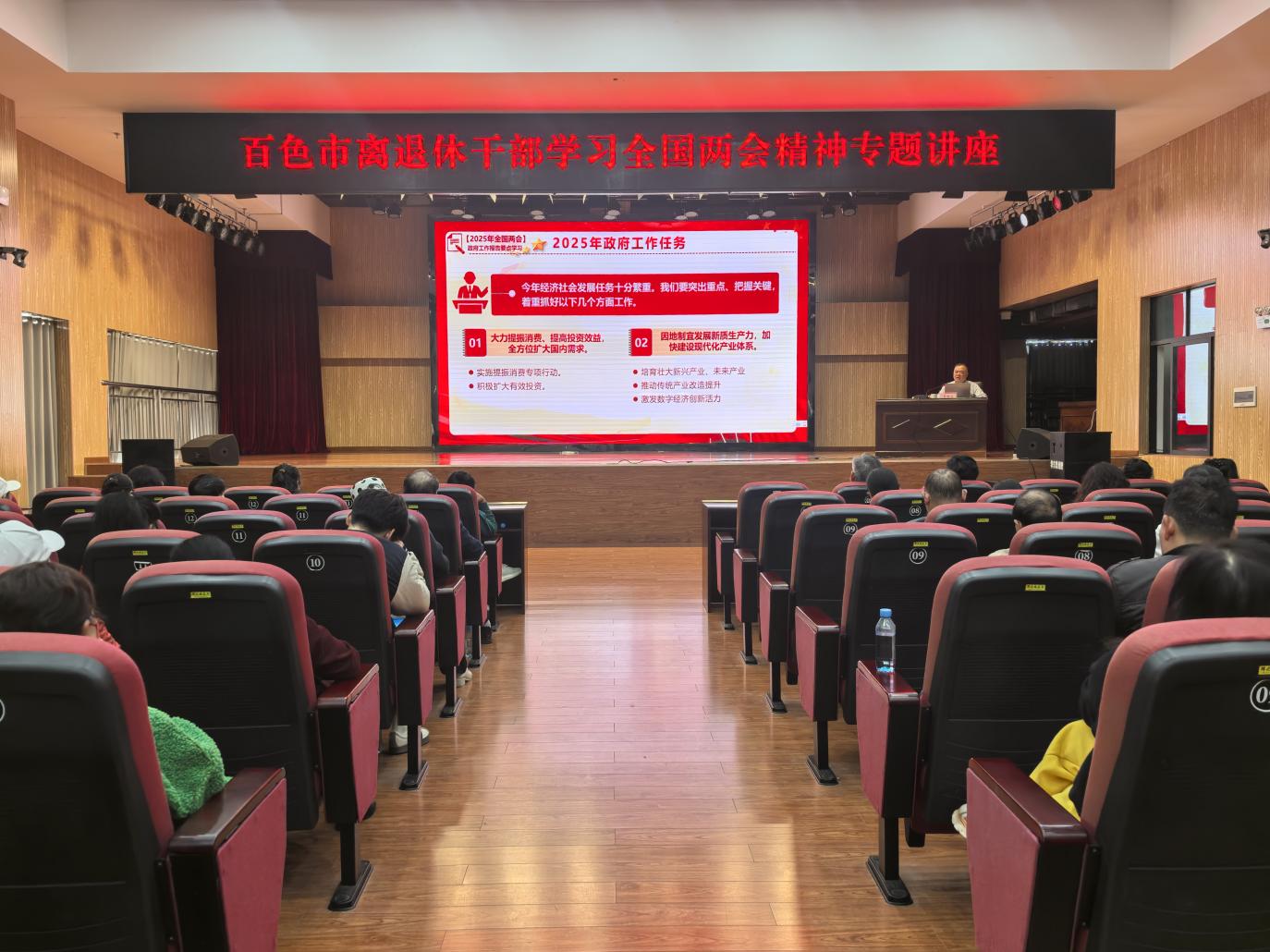 为引导老同志深入领会和准确把握全国两会精神,3月11日,百色市举办离退休干部学习全国两会精神专题讲座。