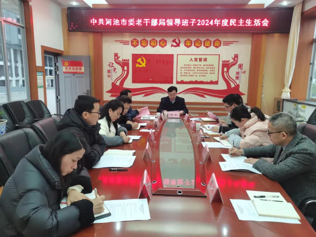 2月14日,河池市委老干部局领导班子召开2024年度民主生活会。市委组织部副部长、老干部局局长罗平主持会议,市委第一指导组到会指导。