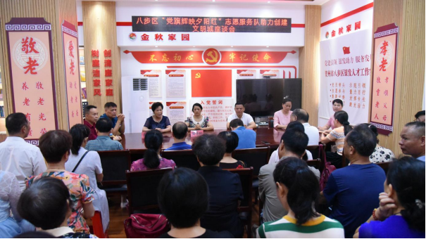 7月11日,贺州市八步区委老干部局召开“党旗辉映夕阳红”志愿服务队创建文明城暨省际红色睦邻廊道建设工作推进会。