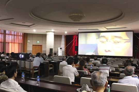图为老干部认真观看影片
