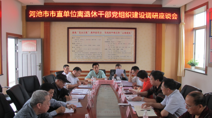 为贯彻落实中办、国办《关于进一步加强和改进离退休干部工作的意见》精神,切实加强和创新市直单位离退休干部党组织建设,4月21日,河池市委老干部局组织召开市直单位离退休干部党组织建设调研座谈会。河池市纪委、市中级人民法院、市人民检察院、市公安局等15个市直单位离退休干部党支部书记、骨干和离退休干部党员代表参加了调研座谈会。河池市委党建办、市直属机关工委有关领导到会指导。