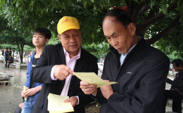 2016年是市、县、乡三级换届年,换届纪律是换届工作的生命线,八步区发挥离退休干部的独特优势,为党和人民的事业增添正能量。4月9日,在贺州灵峰广场民族传统体育节·八步区歌圩活动现场,贺州市八步区老年大学组建换届纪律义务宣传队,开展了以“纪律人人遵守 风气人人监督”为主题的宣传活动,助力市县乡换届工作。宣传员将1000张印有“九个严禁”纪律和举报方式的“明白卡”、环保购物袋免费发放给现场观众和过往市民,并向他们宣传换届工作相关知识。引导广大群众思想上重视、行动上支持、全市市县乡换届工作。(贺州市八步区老年大学)