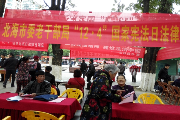 12月4日是我国“国家宪法日”暨全国法制宣传日。当天,北海市委老干局组织离退休干部代表在北部湾广场开展“12.4”普法活动。