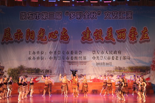 10月15日晚,由崇左市委组织部、老干部局联合举办的崇左市第三届“多彩金秋”文艺汇演在人民会堂举行,崇左市市县(区)老年大学共500多名学员参加了表演。