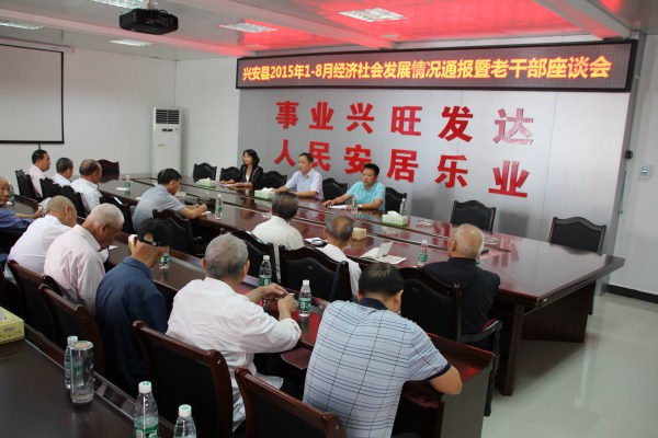 9月16日,兴安县召开2015年1至8月全县经济社会发展情况通报暨老干部座谈会。
