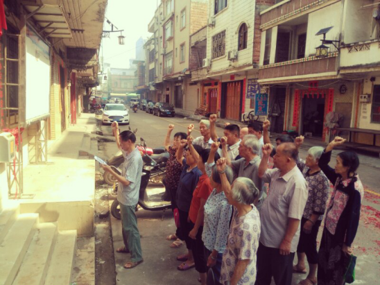 石桥镇老年协会党支部全体党员重温入党誓词。
