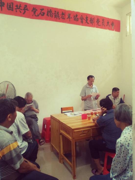石桥镇老年协会党支部召开支部党员大会。