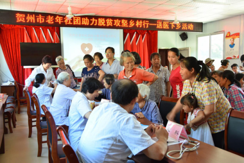 6月28日,贺州市委组织部、市委老干部局、贺州市人民医院晚霞支部到钟山县花山瑶族乡宝鹿村开展“送医下乡·助力脱贫”活动。