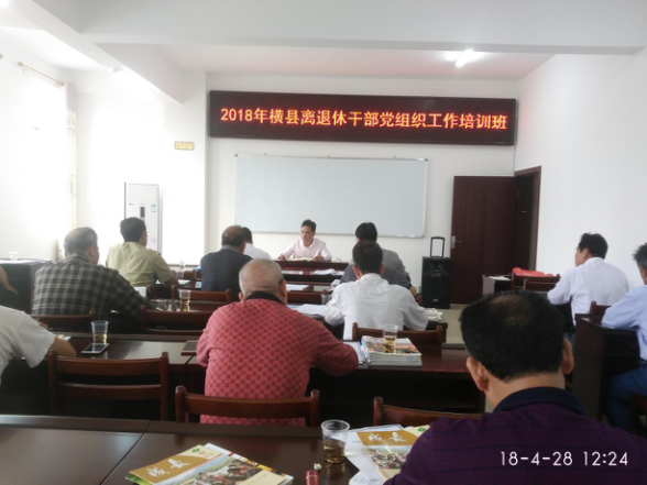 4月28日,横县县委老干部局举办离退休干部党组织工作培训班,全县20多名乡镇老龄支部书记、离退休干部党员参加培训。