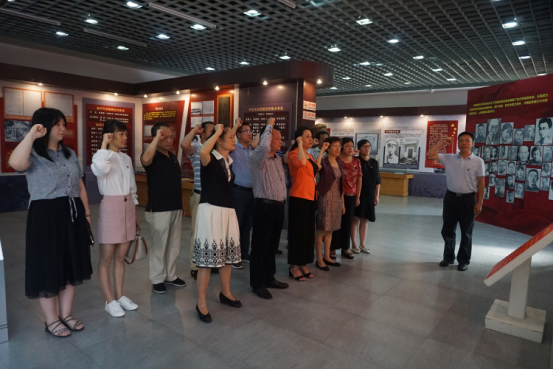 贺州市委老干部局党支部全体党员参观了广西地委、广西特委、广西临时省委、中共梧州支部、梧州市委、梧州地委的革命奋斗历程。在庆祝新中国成立70周年之际,看着墙上革命英雄们青春的脸庞,大家深切地感受到如今的伟大成就来之不易。在“不忘初心 牢记使命”展厅中,面对党旗,全体党员再次举起右手,重温入党誓词,将习近平总书记写下的“中国共产党人的初心和使命,就是为中国人民谋幸福,为中华民族谋复兴”牢记在心。
