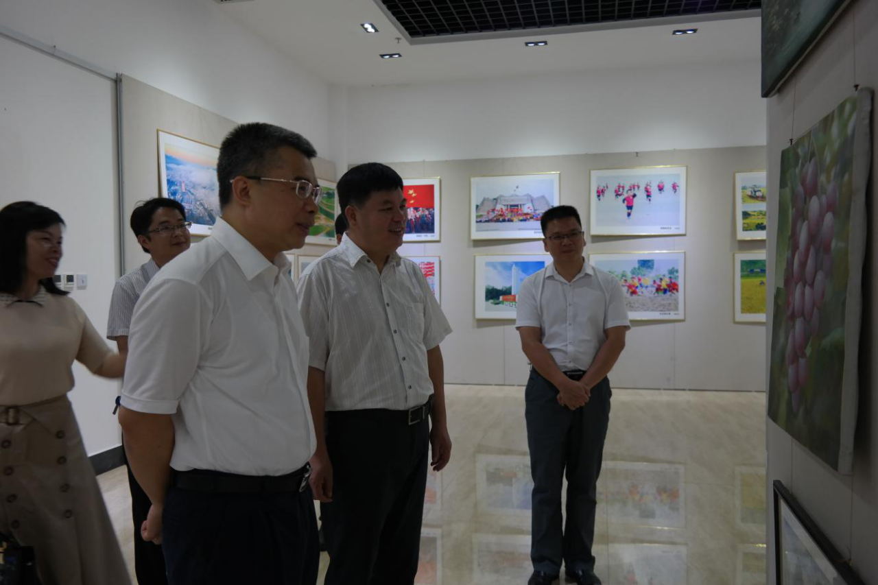 8月29日,百色市委常委、组织部部长黄智宇在百色市委老干部局领导班子的陪同下,到市图书馆展厅观看百色市第六届“多彩金秋”系列文化活动“我和我的祖国”主题书画摄影作品展,并就文化活动相关工作进行指导。