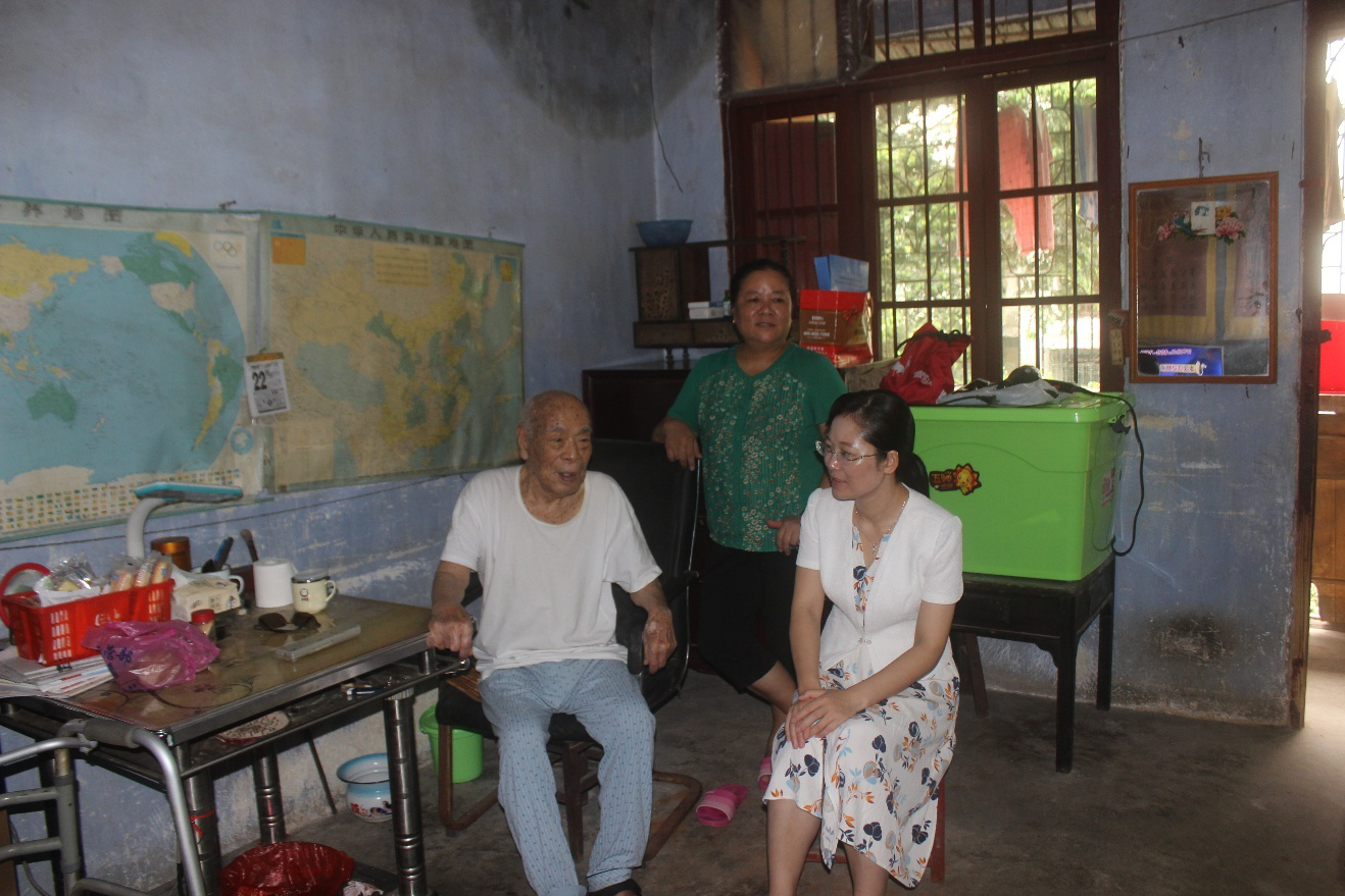三江县委组织部部长梁敏娟看望慰问抗战老战士 今年 100周岁的宋庆海同志是河北省晋州人,1945年初参加抗日战争,属南下干部,1980年在该县县委统战部离休。梁敏娟亲切地对老人说:“当今国家富强、民族复兴、人民幸福,这一切都是你们这些倍受尊敬的革命老前辈当年打下的基础,你们艰苦奋斗的作风和革命精神被一代代传承下来,我们的党、祖国、人民永远不会忘记抗战时期走过来的老战士、老干部、老同志。”梁敏娟仔细询问了宋老的身体状况,当得知老人虽然行动不便、听力不好,但思维敏捷,每天仍坚持读书看报、关心国家大事时,梁敏娟深有感触地说,宋老时刻关注祖国的发展、关注三江的发展,政治品格好,思想境界高,是我们后辈学习的榜样。