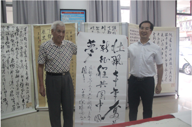 9月4日,梧州市委老干部局邀请中共梧州市委原书记徐瑞林、梧州市政协原主席李毅两位老领导到市老年大学现场挥毫泼墨,用自己的创作抒发爱国爱党的真挚情怀,表达对新中国成立70周年的美好祝福和殷切期盼。