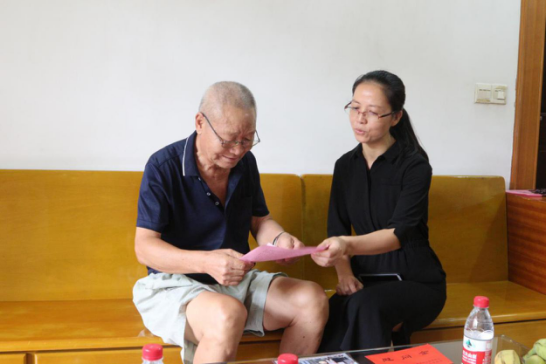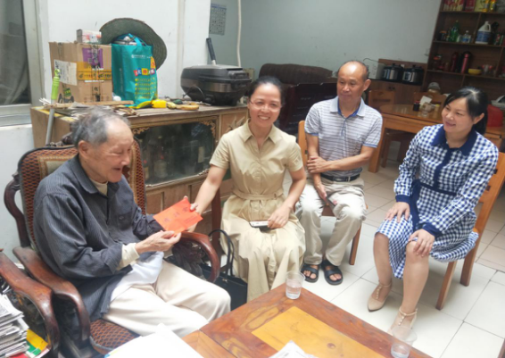 慰问组成员慰问离休干部黄时和 在慰问过程中,慰问组人员与老干部亲切交谈,详细询问了他们的学习、生活以及子女的工作情况,认真听取老干部对全县经济社会发展情况的意见和建议。同时,慰问组人员为他们送上慰问品、慰问金和中秋的祝福,向他们发放《不忘初心、牢记使命,为建设壮美广西增添正能量——致全区离退休干部的倡议书》,传递了县委、县政府对老干部的一片深情厚谊和无限关怀,并对他们为钟山县作出的贡献表示感谢。